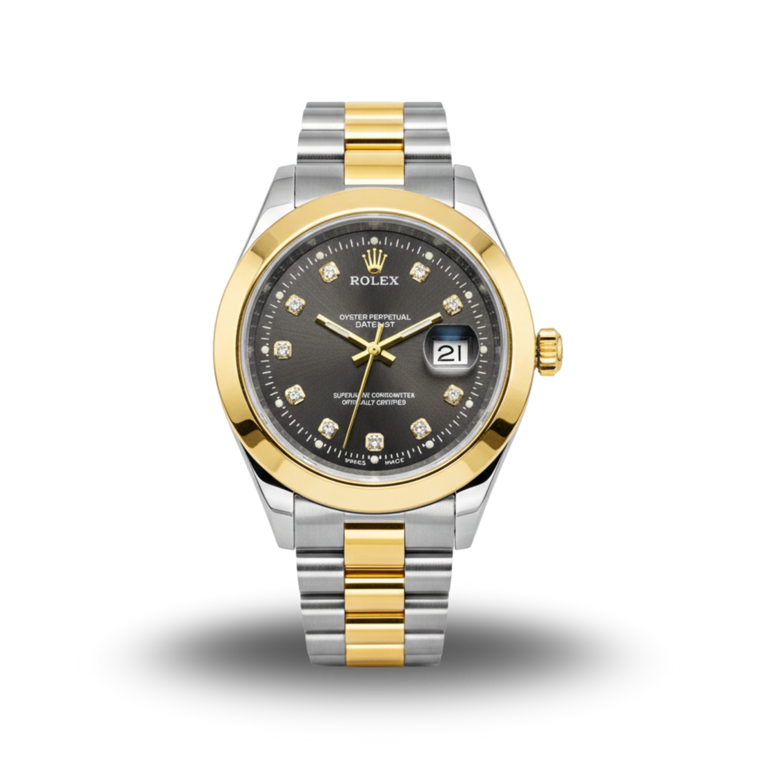 Rolex Style Two-Tone Couple's Set: Brown Diamond Dial & Oyster Bracelet