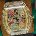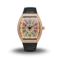 FM Diamond-Cut Rose Gold Watch with Multi-Colored Gemstone Dial